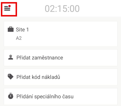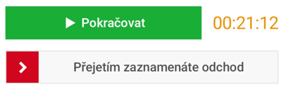 Klepněte na Začít přestávku pro zahájení přestávky (dostupné pouze při přihlášení k práci).