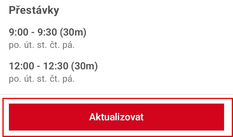 Po zapnutí se přestávky automaticky zobrazují pro vybrané dny a časy na základě nastavení uživatele nebo firmy.