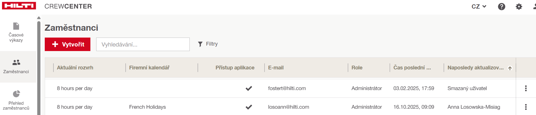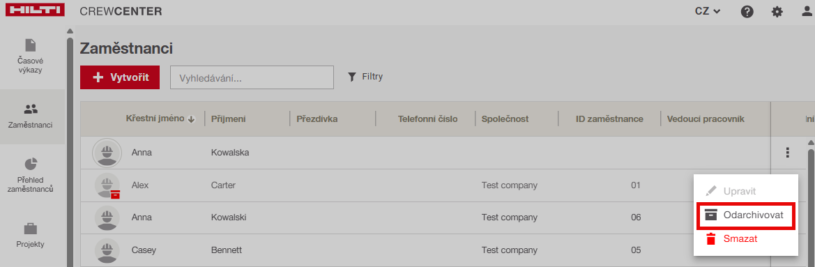 - Zaměstnance lze nyní znovu upravovat, archivovat nebo mazat.