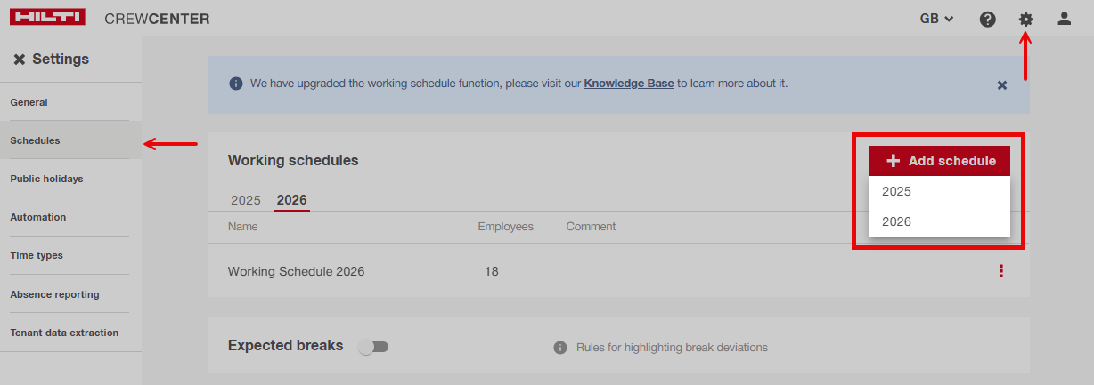 Roční pracovní plán v CrewCenter umožňuje administrátorům definovat očekávanou pracovní dobu pro každý den v roce. To zajišťuje přesný výpočet přesčasů, absencí a mezd pro všechny zaměstnance. Pochopení a správa těchto plánů je zásadní pro dodržování předpisů a efektivní řízení pracovních sil v prostředí stavebnictví.