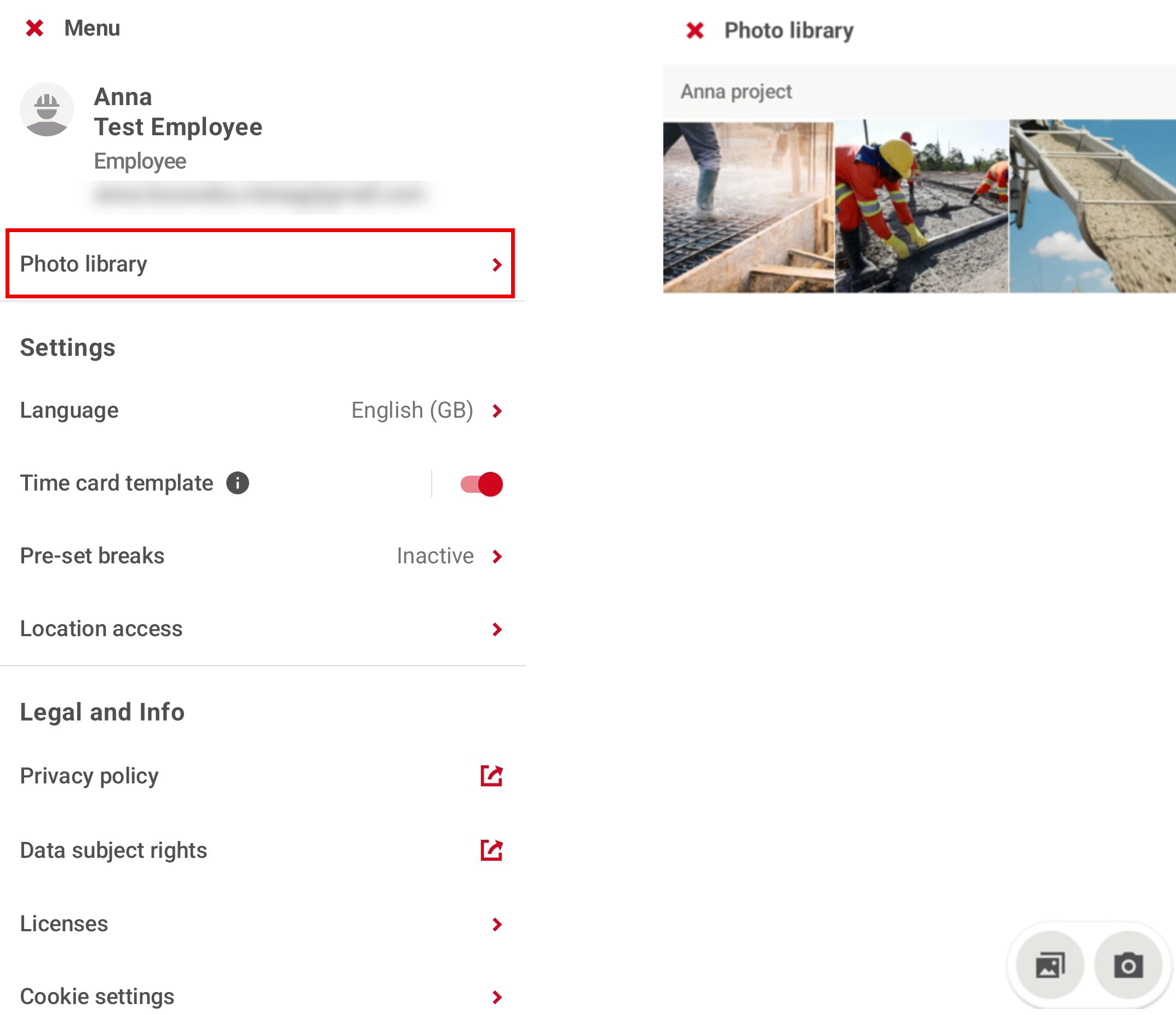 Knihovna fotografií je určena pro administrátory a supervizory. Pracovníci nahrávají fotografie přes mobil, ale knihovnu na webu nespravují.