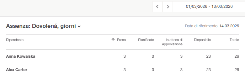 • Nastavte limity pro povolenou dovolenou a přiřaďte je vybraným zaměstnancům nebo skupinám.