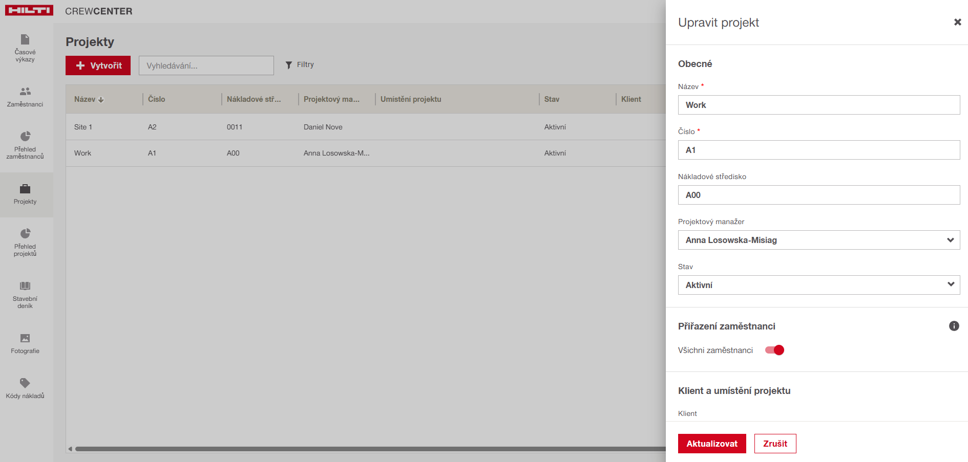 Některé uživatelské role nyní mají různé úrovně viditelnosti projektů. Supervizoři a administrátoři mohou přiřazovat zaměstnance ke konkrétním projektům a zaměstnanci uvidí pouze projekty, které jim byly přiřazeny – jak v mobilní aplikaci, tak ve Webu. Administrátoři nadále vidí všechny projekty.