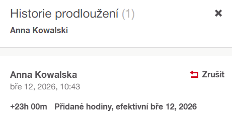 Administrátoři nyní mohou odstranit ruční opravu přesčasů přímo z historie oprav přesčasů. Po potvrzení zrušení záznam zmizí a zůstatek přesčasů zaměstnance se automaticky přepočítá.
