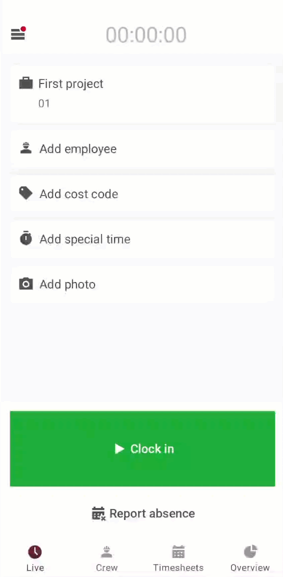 Klepněte na záložku Timesheets v pravém dolním rohu.