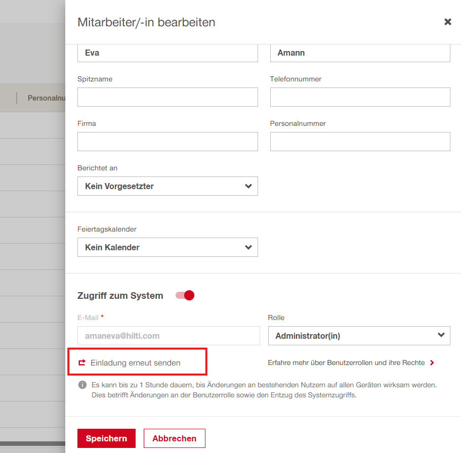 • Wenn keine E‑Mail eingegangen ist, kann der Administrator die Einladung erneut senden.