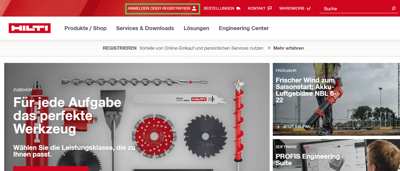 3. Melden Sie sich m Ihren it Hilti‑Zugangsdaten an. (Ihre E-Mail-Adresse + Passwort).