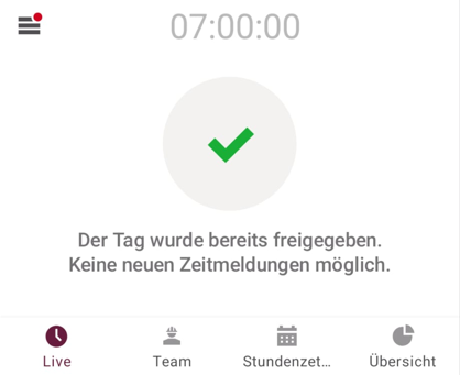 Hinweis: Die Live-Erfassung ist gesperrt, wenn der aktuelle Tag für den Benutzer bereits genehmigt wurde.