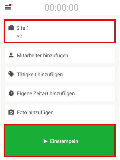Tippen Sie auf die Schaltfläche "Einstempeln" in der Mitte des Bildschirms. Die Zeiterfassung beginnt sofort.