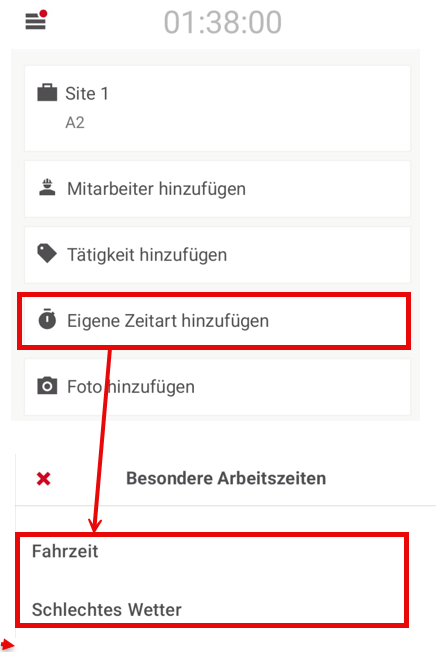 Tippen Sie in der Mitte des Bildschirms auf "Eigene Zeitart hinzufügen".