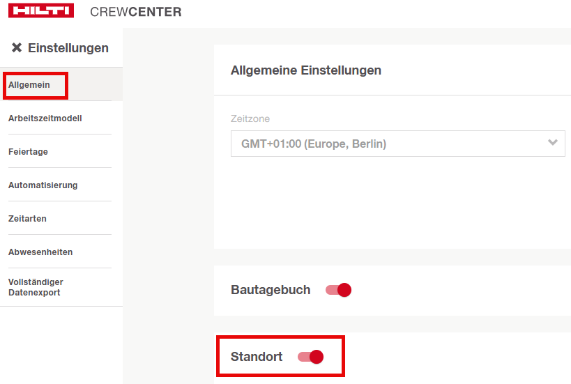 Um die Standortdaten zu aktivieren, muss der Administrator: