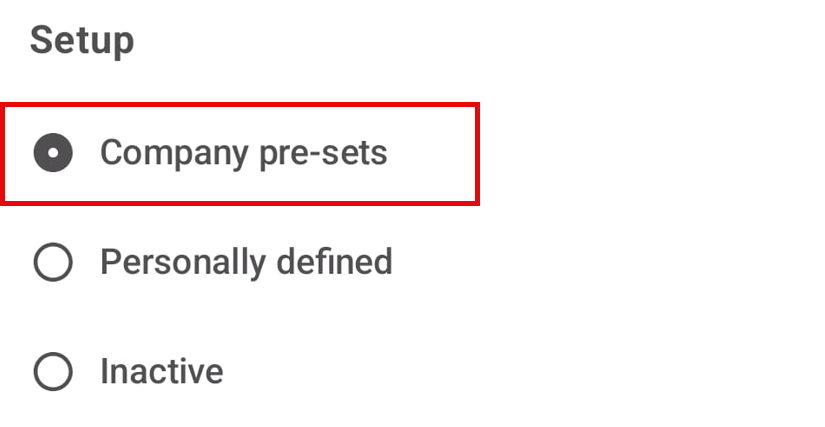 Available only if the Admin has configured company-wide breaks in the Web interface. These breaks are automatically applied to all users who select this option.