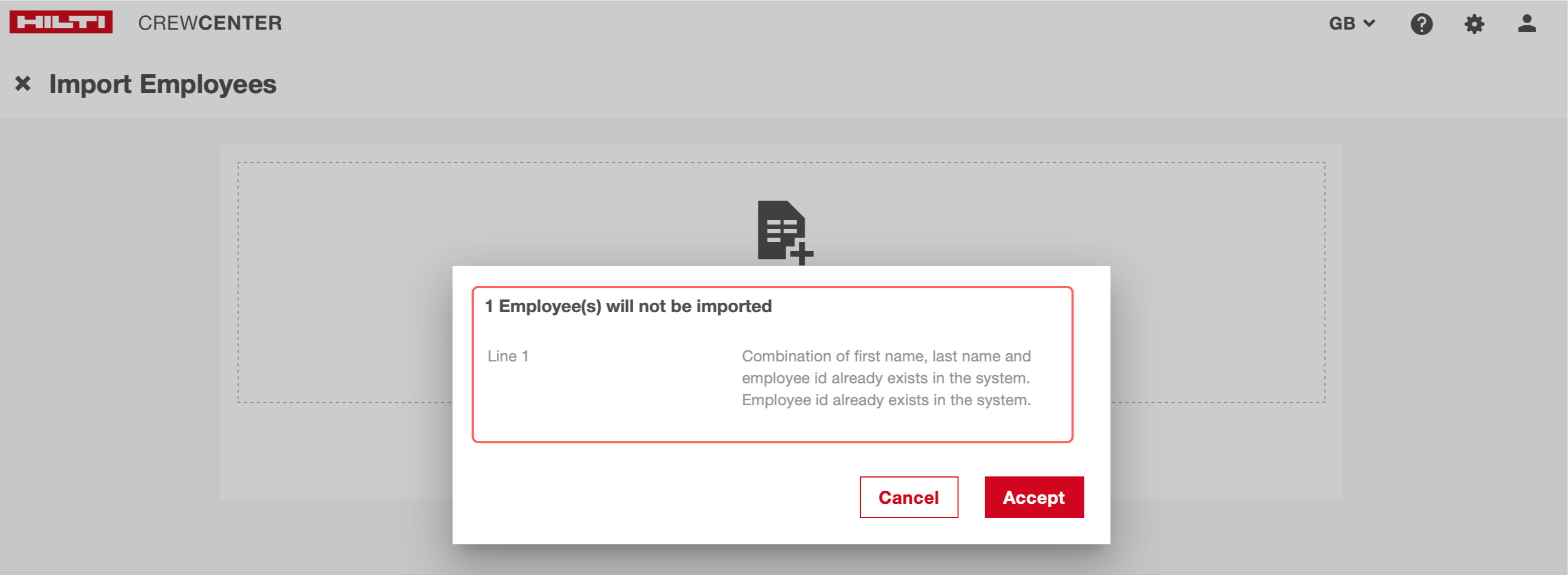 Note: If you upload duplicate Employee details which is already available in the system, you will get message as below.