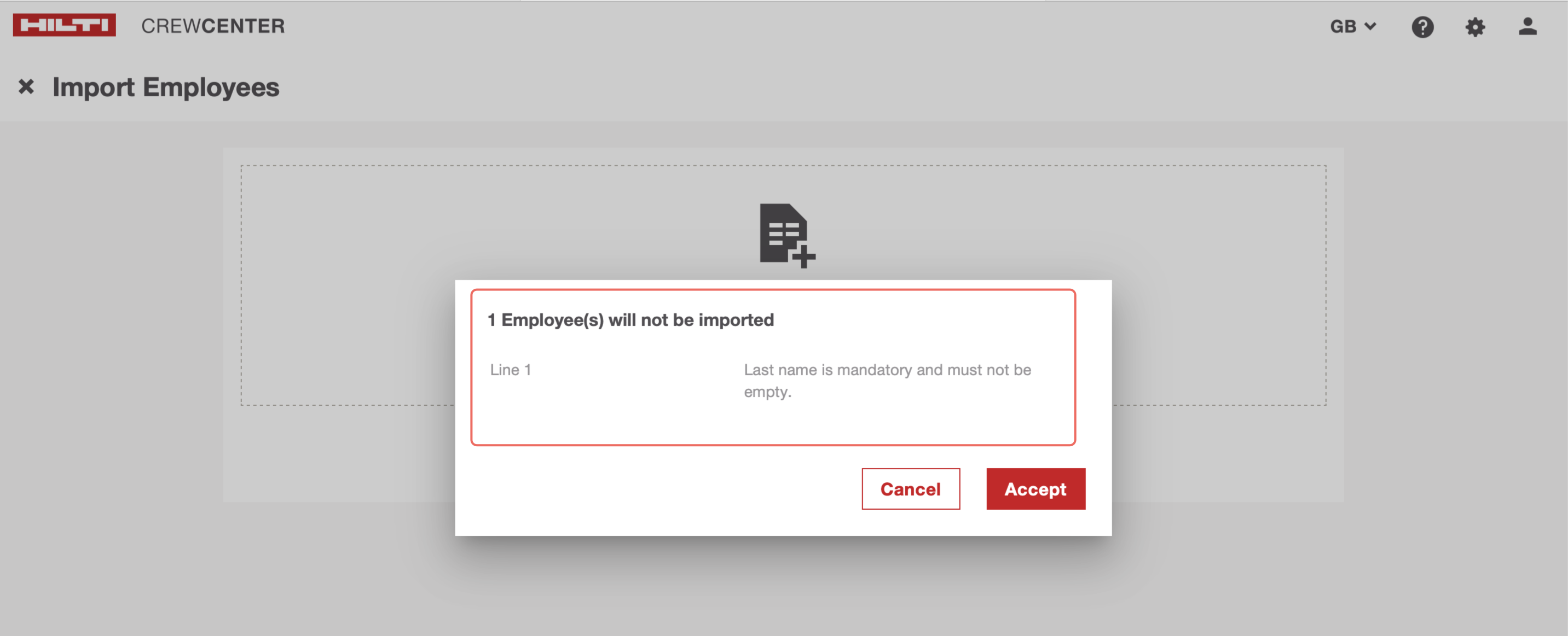 Note: If you do not add values in any mandatory fields, you will get error as below and import for the Employee will get rejected by the system: