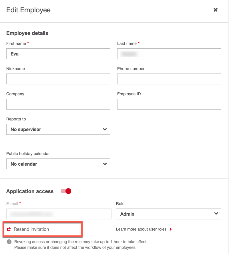 Click "Resend invitation" next to the employee’s email address.