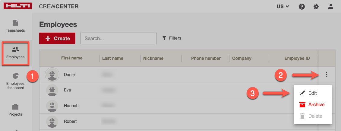 Admins can resend the CrewCenter invitation email to Employees: