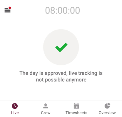 Note: Live Tracking is blocked if the current day is already approved for the user.
