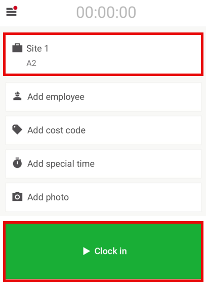 Tap the Clock in button in the center of the screen. Time tracking starts immediately.