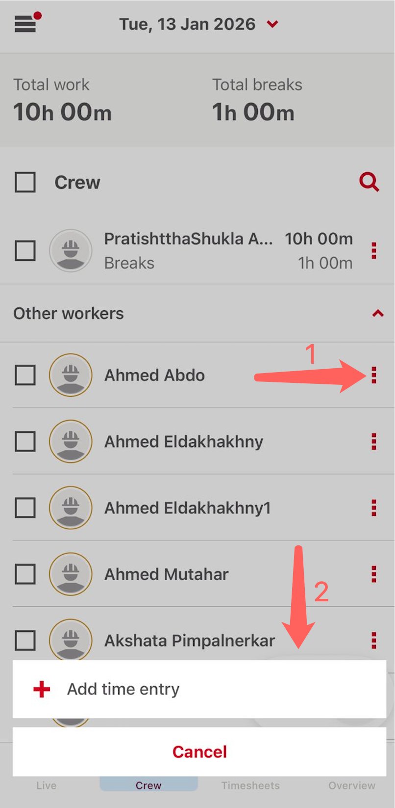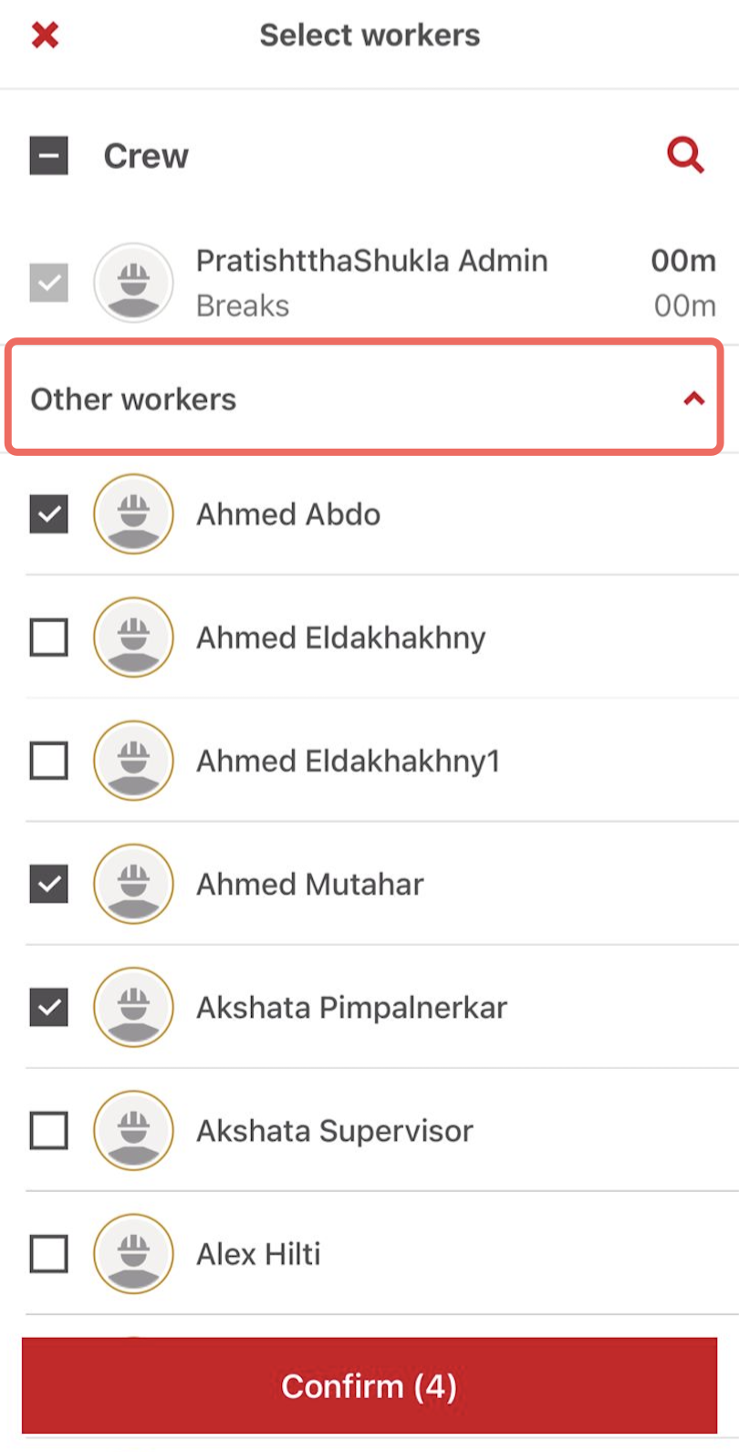 2. Find Jumper workers from 'Other workers' and use the ellipsis (…) next to a worker to Add or Edit the time for Jumper worker.