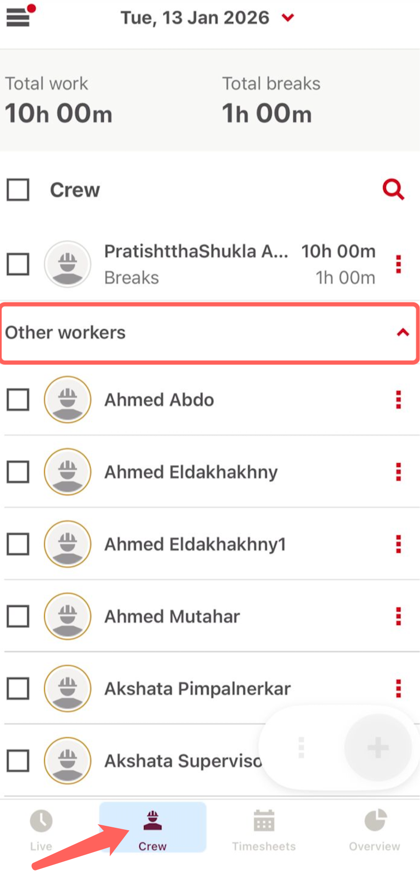 Jumper worker not visible in lists (Crew/Live/Timesheets)?