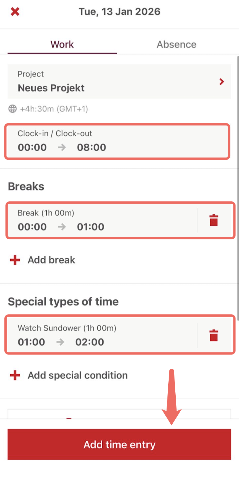 3. Add time entry and Save the entry.