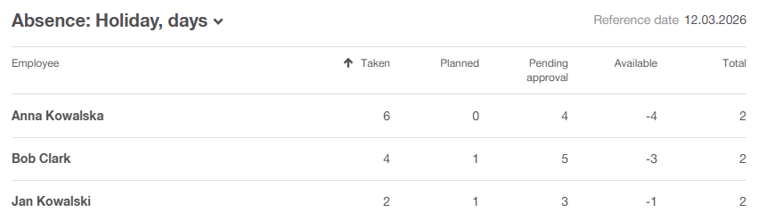 For single employee, when a limited absence is selected, the app now shows the employee’s remaining balance.