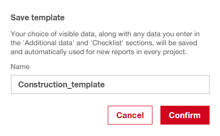 Note: Saved templates auto-populate fields for future reports on the same project.