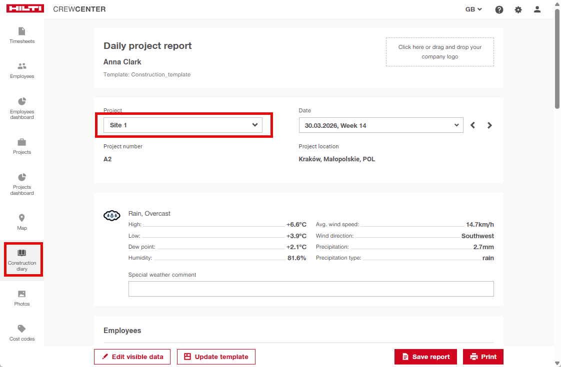 Create a Construction Diary Project Report
