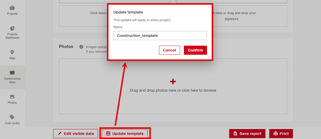 Go to the Construction Diary tab and select the project for which you want to update the template.