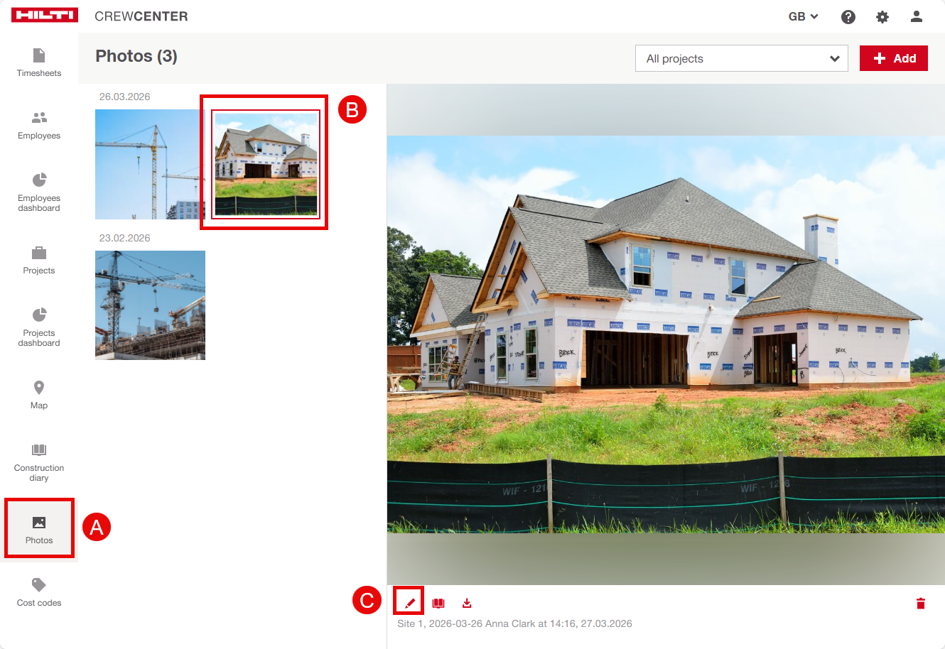 Log in to the web platform and select Construction Diary.