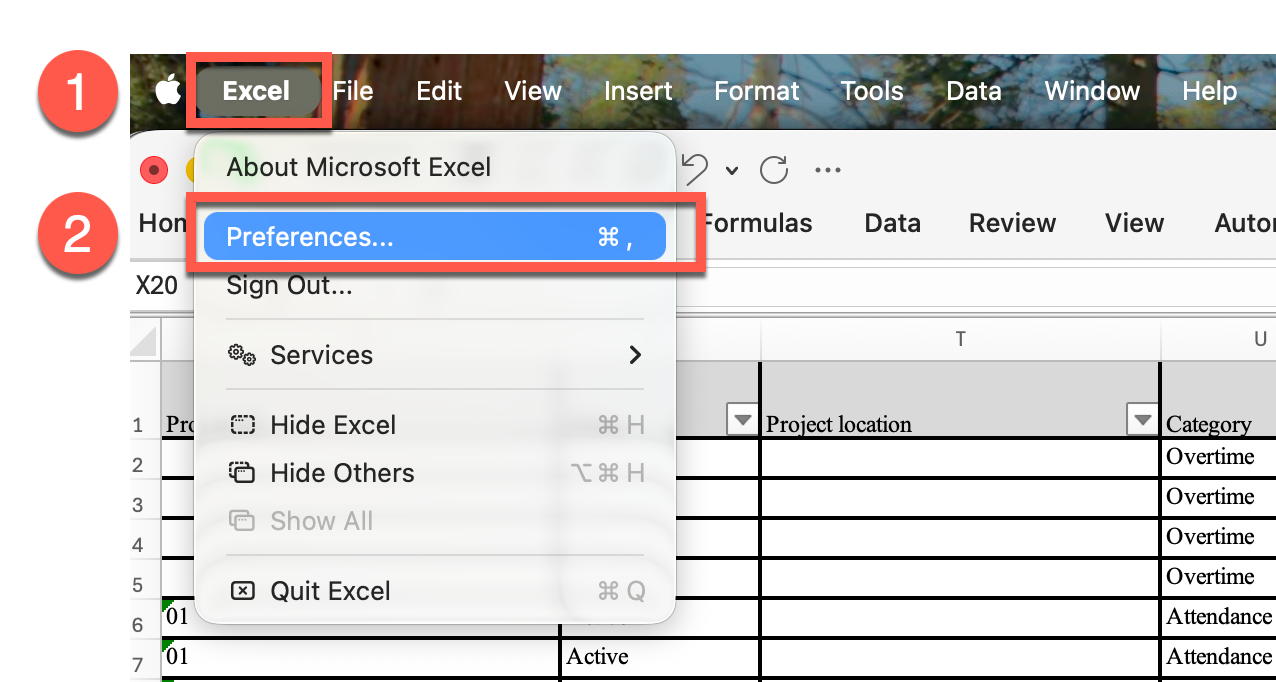 - Click Excel in the top menu