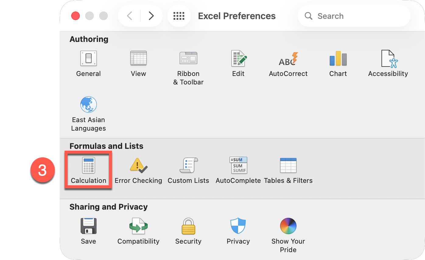 - Scroll to When calculating this workbook
