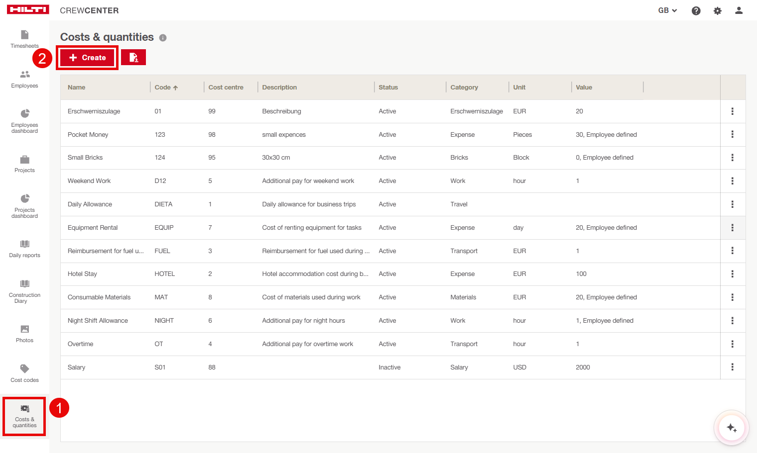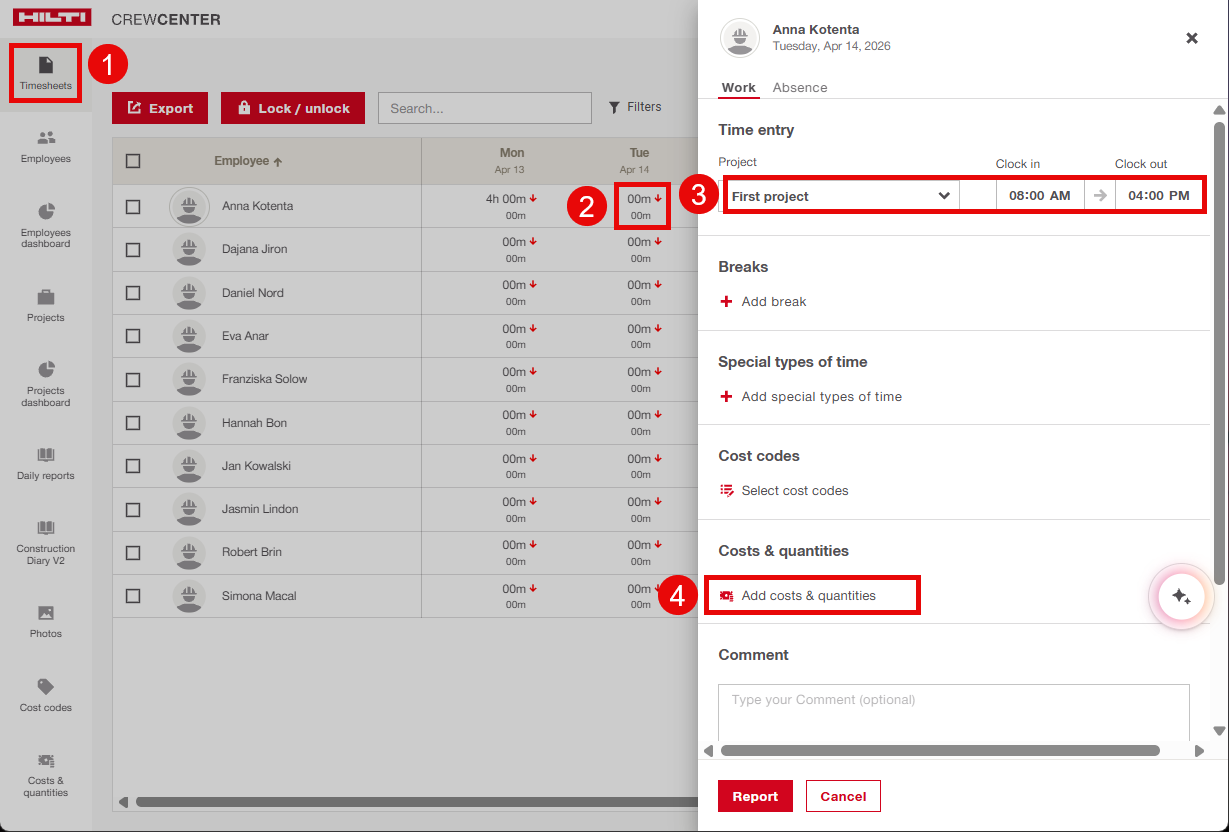 If you need support setting up Costs & Quantities or want guidance on how to best use the feature with your teams, please contact the CrewCenter support for help: support@hilticrewcenter.zendesk.com
