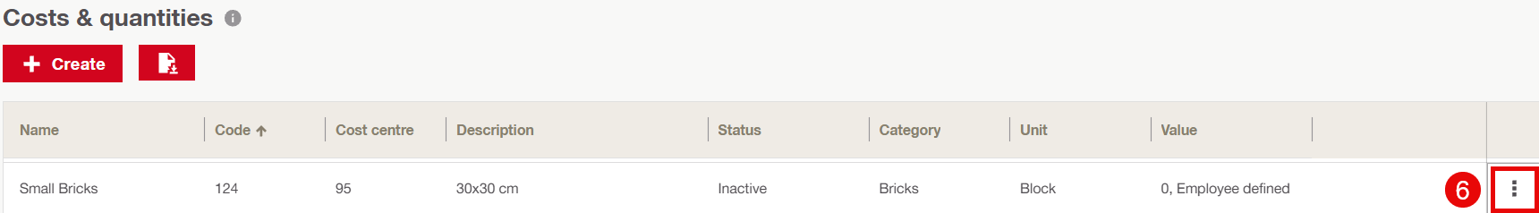 On the web, Administrators have full control over configuration and management. This includes a dedicated management page where they can create, edit, and organize costs and quantity types, maintain naming consistency, and manage availability across projects and teams.