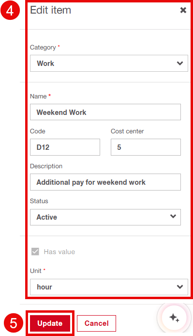 - To modify an existing cost, select the item you want to change.