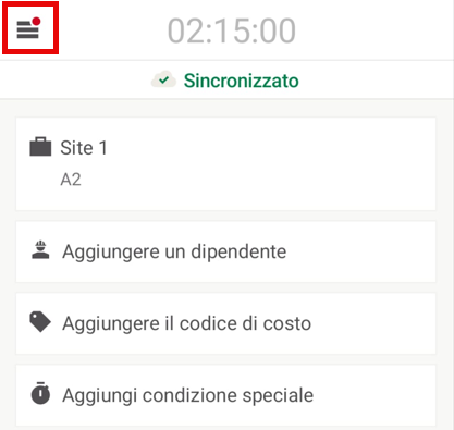 Tocca Inizia pausa per iniziare una pausa (disponibile solo quando si è timbrati).