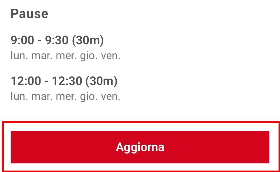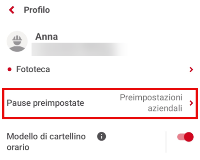 Qualsiasi modifica alle pause definite dall'azienda viene evidenziata nelle impostazioni dell'app con un punto rosso.