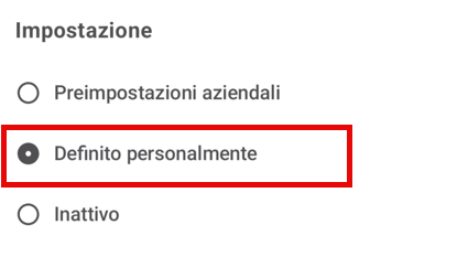 Gli utenti possono scegliere tra pause aziendali, personali o disattivare le pause preimpostate.