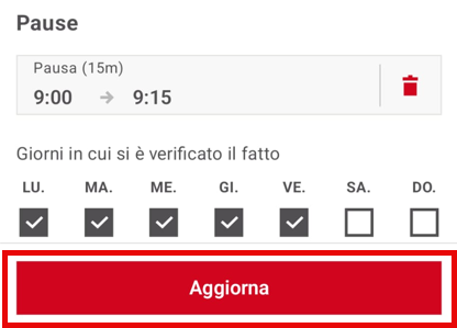 Le pause definite verranno ora aggiunte automaticamente ai tuoi cartellini per i giorni selezionati.