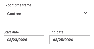 Inserisci le date desiderate per generare un'esportazione per un periodo specifico.