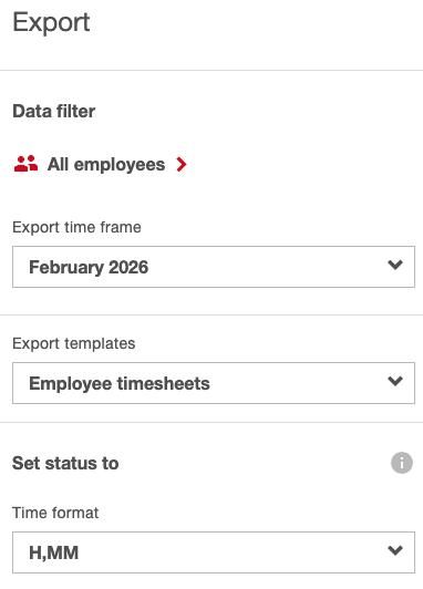 Una volta nel menu “Esporta”, puoi scegliere Tutti i dipendenti / [X] dipendenti (dove X è il numero di dipendenti scelti)