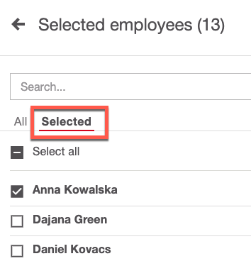 Inoltre, hai la possibilità di rivedere i dipendenti selezionati in una vista separata.