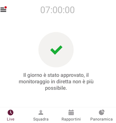 Nota: il Monitoraggio in diretta è bloccato se il giorno corrente è già stato approvato per l'utente.