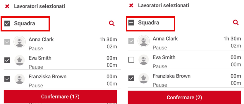 L'app riutilizza automaticamente la selezione precedente dei dipendenti per la successiva timbratura.