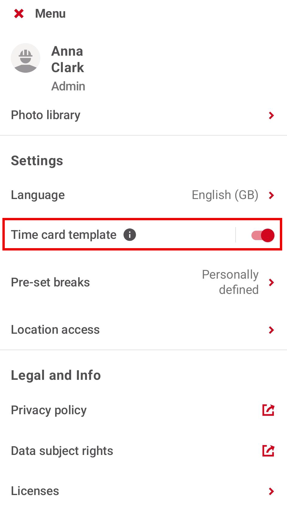 Una volta che la funzione è abilitata dall'Admin, gli utenti mobile possono gestire autonomamente l'uso dei Modelli di Cartellini Orari: