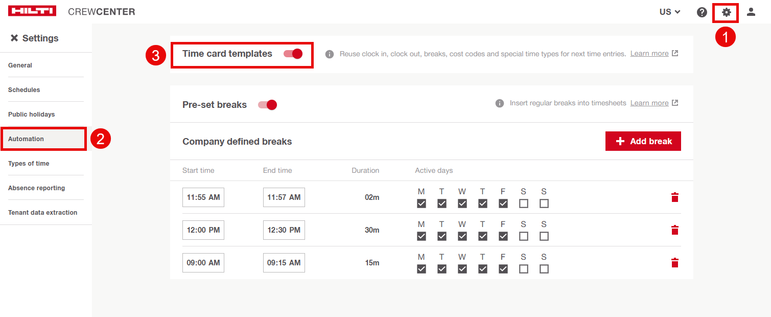 Come Admin, puoi abilitare la funzione Modello Scheda Oraria per la tua azienda utilizzando CrewCenter Web.