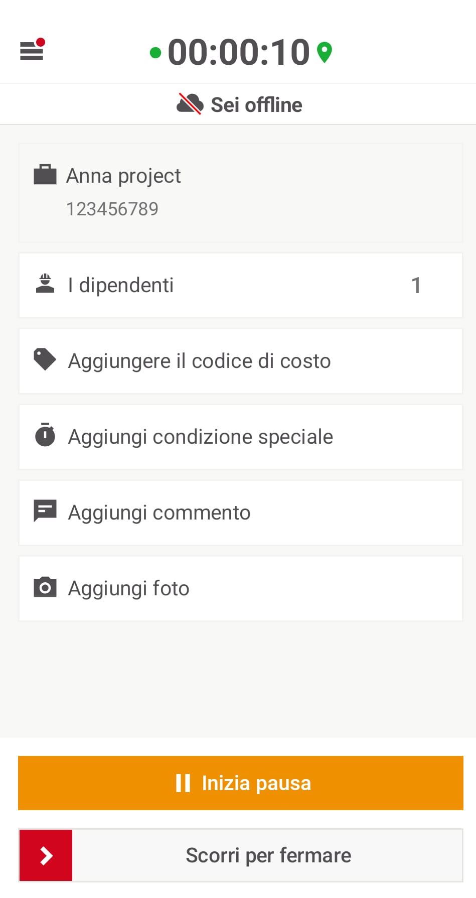 Nota: Il post tracking (inserimento del tempo per giorni precedenti) non è disponibile offline.
