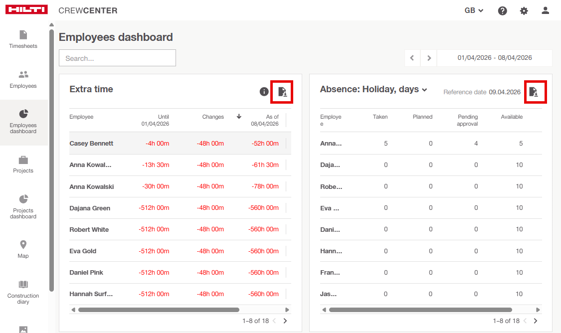 Questo articolo copre due nuove funzionalità disponibili in CrewCenter Web: la possibilità di scaricare i dati della tabella in CSV con un clic su varie pagine e l'opzione di salvare le preferenze di esportazione. Questi miglioramenti sono progettati per semplificare la gestione dei dati e ridurre lo sforzo manuale per gli utenti che lavorano con dati di progetto, dipendenti e codici di costo.
