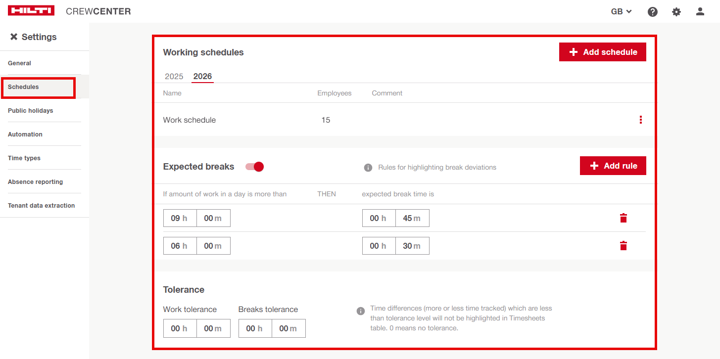 L'Orario di Lavoro Annuale in CrewCenter permette agli Admin di definire le ore di lavoro previste per ogni giorno dell'anno. Questo garantisce un calcolo accurato degli straordinari, delle assenze e delle buste paga per tutti i dipendenti. Comprendere e gestire questi orari è essenziale per la conformità e una gestione efficiente della forza lavoro in ambienti di costruzione.